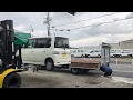 軽自動車は軽いので簡単にフォークリフトで上がります。遠方より...