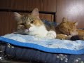日本猫長毛種三毛猫のみけちゃん。朝早く寝てたせいか、まだまだ...