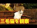 公園の猫スポットに白っぽい三毛猫がいました。近づいてこないの...