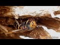 巣の材料にするため倒木を鋭い顎で削り取り、唾液と混ぜてダンゴ...