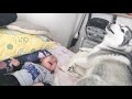 看病するつもりで顔を舐めたらギャン泣きされたハスキー犬のアル...