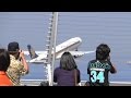 大型機が続けて離陸する時間帯のため、見学者も多くなり撮る方も...