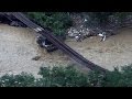 8月に関東を襲った台風9号の影響で電車が脱線し、運転を見合わ...