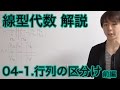 線型代数の解説です. 04-1.行列の区分け 前編 です. ...